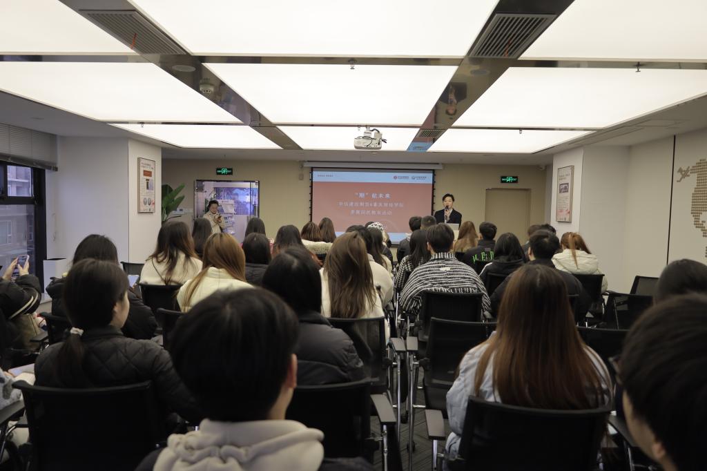 下午,实践队伍来到泰康人寿保险公司江北分公司。企业导师围绕公司发展历程、寿险产品特征和人口老龄化现状展开讲解,重点介绍了泰康“长寿时代”背景下“保险+医养”相结合的业务模式和多元职业发展通道。