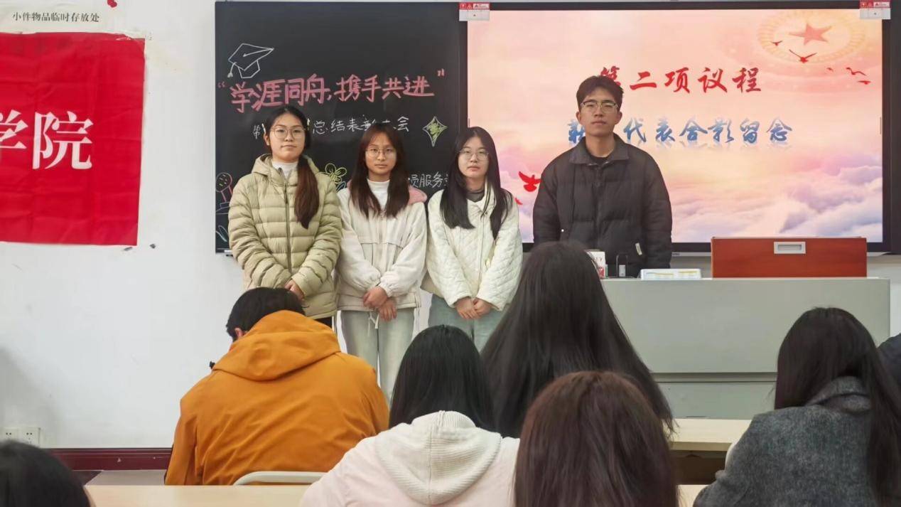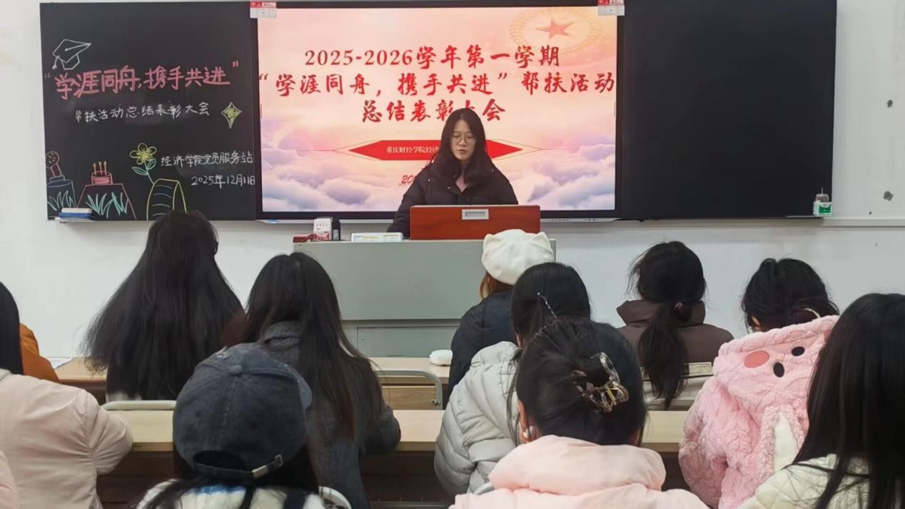 为复盘帮扶活动成效、凝练互助经验,进一步深化朋辈互助育人模式,12月11日,我院党员服务站在教学楼1424教室召开“学涯同舟,携手共进”帮扶活动总结表彰大会。我院党员服务站指导老师朱明东老师、专职辅导员潘璐老师、各帮扶结队小组共同出席此次活动。