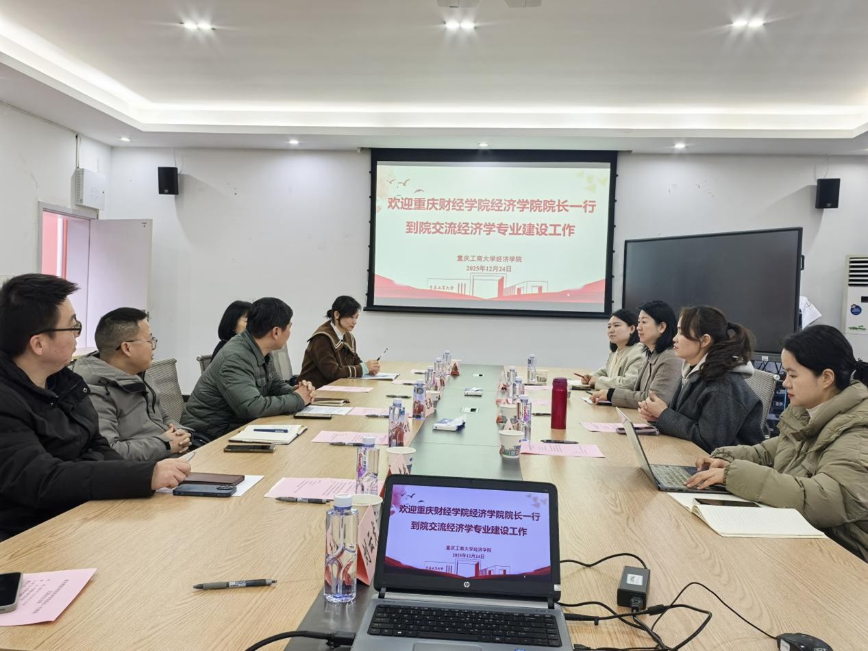 为适应新发展格局与数字经济背景下经济学专业建设的新要求,学习借鉴一流专业建设经验,2025年12月24日下午,我院院长宋湘琴、副院长刘春兰带领专业负责人王莉姗及骨干教师李星林一行四人,赴重庆工商大学经济学院开展专题调研。重庆工商大学经济学院院长宋瑛、副院长尹元福、应用经济系主任车四方、政治经济系主任林黎以及骨干教师王建业、刘云龙等参加了本次交流活动。