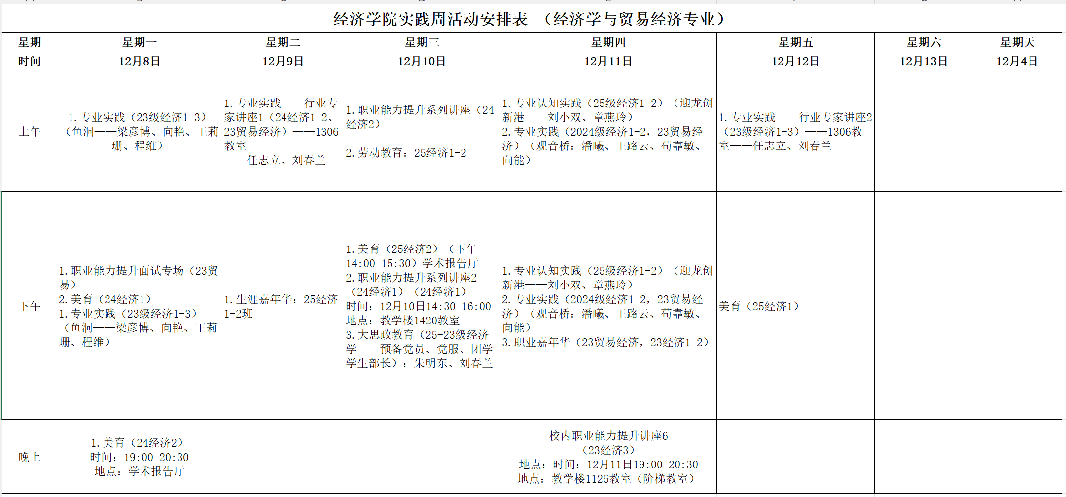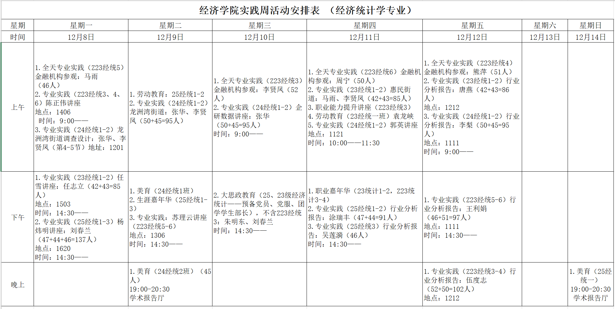 (四)活动结束后,各专业做好考核、总结及相关资料归档工作,于12月15日前将实践周总结报告报送学院。