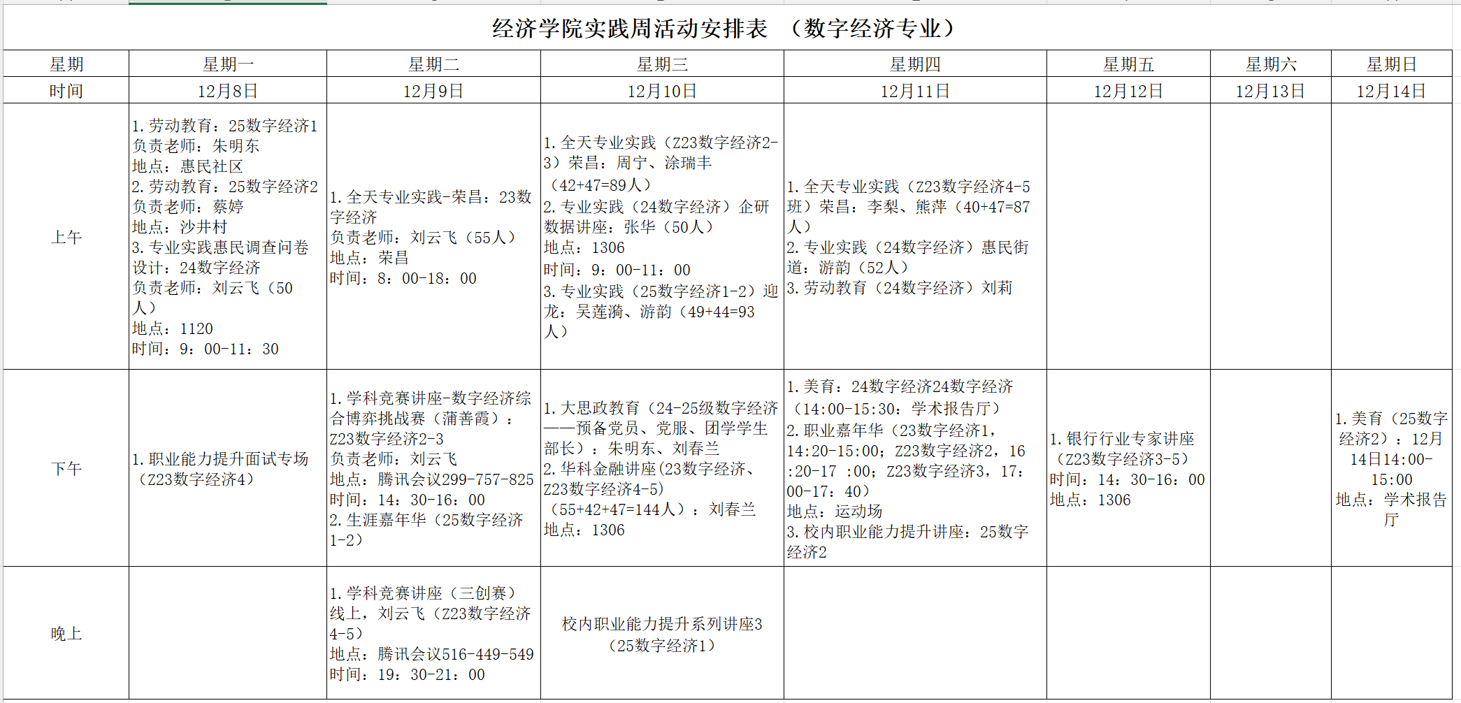 2025年12月8日-12月12日(第14周),期间全院原定理论教学与实验教学暂停。